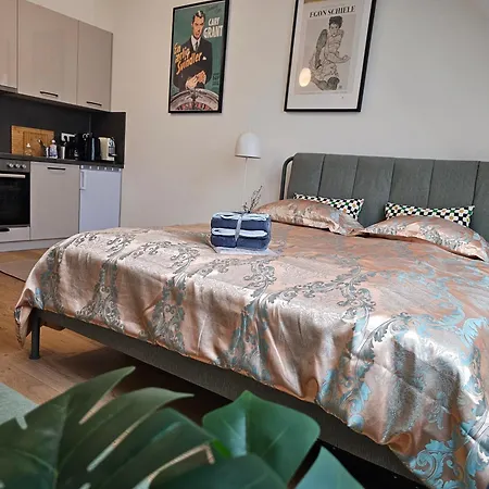 The apartment is equipped with self-catering amenities such as an electric kettle, a fridge, and a kitchenware, providing guests with the opportunity to prepare their own meals. The nearest Embelgasse bus stop is a stone's throw from the property.